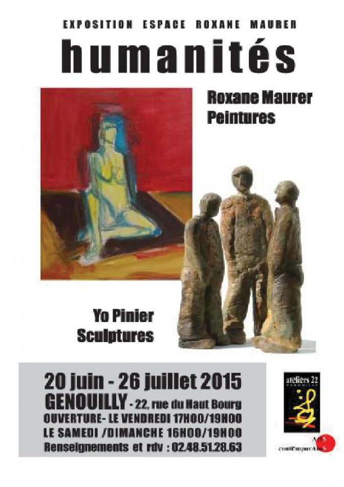 Espace Roxane Maurer" -Exposition "Humanités" jusqu’au 26 juillet 2015- Regard croisé sur les peintures de Roxane Maurer et les sculptures de Yo Pinier.