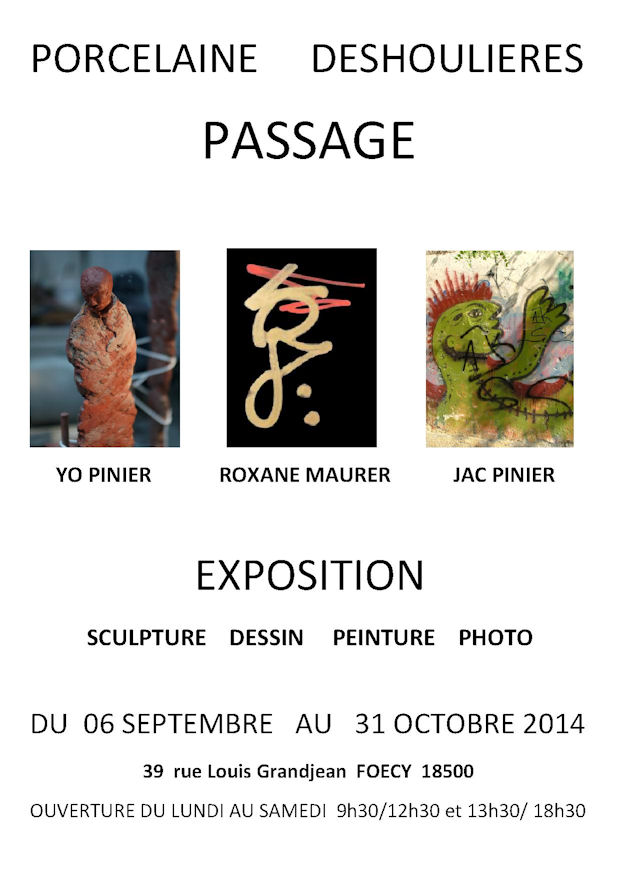 Dessins, peintures et travaux numériques de ROXANE MAURER sculptures de YO PINIER - photos de JAC PINIER présentés dans la belle salle de la Manufacture DESHOULIERES.