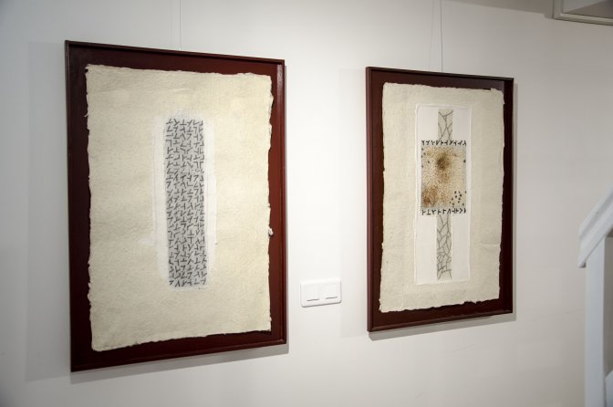 Les œuvres de Daniel Bordier se résument en une écriture à décode. Féru de culture chinoise, il s’est penché sur la philosophie bouddhiste, qui transparaît à travers des traces conjuguées crayon et au pinceau (notre édition du 17 juin).